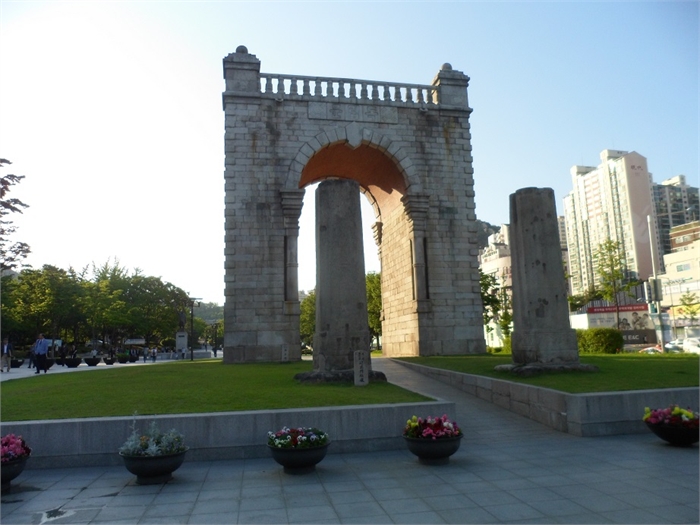 ▲서울 서대문구 독립공원에 위치한 독립문이다. 일제로 부터의 독립이 아니라, 청나라로 부터의 독립을 뜻한다. 그 앞에는 영은문迎恩門의 기둥이 서 있다. 중국 명나라의 은혜를 맞이하는 문이라는 뜻이다. 중국 사신이 올 때 맞이하는 문이다. 이 문 옆에는 모화관慕華館이 있었다. 모화관은 중화를 사모하는 집이라는 뜻이다. 현재 모화관 자리에 순국선열유족회 기념관이 자리하고 있다. 오늘날 식민사관이 창궐하며 주인 행세를 하는 근본 원인을 제공하고 있는 구한 말의 역사의 한 단면을 말해주는 유적이다.그런데 불행하게도 해방 후 점령군으로 이 땅에 진주한 미군정부는 친일파를 조선총독부 상태, 그대로 유지해서 일제침략 2기를 구축했다. 이를 이어 받은 이승만 정권이 들어서자 친일파가 대한민국 정부 주요자리를 다 차지해 버렸다. 이후 우리 현대사는 친일파에 의해 독립투사들이 살해되거나 ‘빨갱이’로 몰려 살아가는 어처구니없는 비극으로 점철된다. 이에 따라 일제의 역사침략에 맞서 싸웠던 단재 신채호 등 독립투사들의 민족사관도 친일식민사관에 의해 역시 청산당하고 만다. 이 후 친일식민사관의 견제 받지 않는 일방적 독주와 독재로 이어진다. 그 세월이 올 해로 72년이다.
