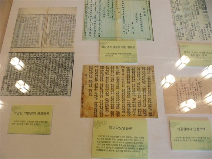 ▲순국선열유족회기념관 현충사에는 구한말 의병투쟁부터 대일항쟁기 독립투쟁의 역사를 실감할 수 있는 당시 현장의 자료들을 모아 전시하고 있다. 국립중앙박물관등 보통 박물관에 가면 전시물을 도록책자로 만들어 같이 보여주고 있다. 그런데 이 유족회에서는 도록을 제작할 재정이 없어 1백년이 넘는 선열들의 유물을 보존처리가 하나도 못 한 채, 유리관에 전시하고 있었다.독립투쟁가와 후손에는 반드시 목숨을 바쳐 무장투쟁만 한 사람들만 포함되어 있는 것이 아니다. 일제는 무력으로만 우리민족을 탄압한 것이 아니다. 역사침략을 통해서 근본적으로 우리의 문화와 정신 및 사상, 종교를 파괴했다. 일제의 이러한 역사침략에 응전하여 투쟁한 역사학자들과 그 후손이 있다. 백암 박은식, 무원 김교원, 단재 신채호, 위당 정인보 등이 대표적인 인물이다. 또한 이들의 역사관을 계승해, 국가가 국민세금으로 키워주고 있는 제도권 친일식민사학계와 사비를 털어 외롭게 투쟁하는 사람들과 단체들이 있다.