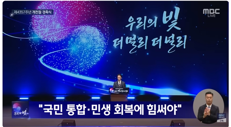 ▲김민석 국무총리가 이재명 대통령의 경축사를 대신 읽고 있다. 자료: 문화방송 발췌.