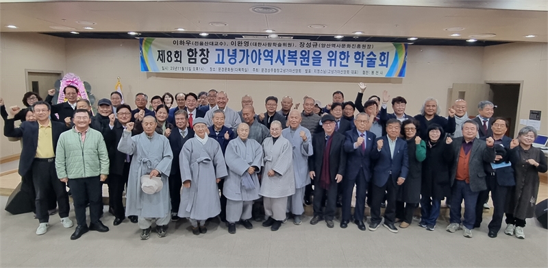 ▲ 2025고녕가야 복원 학술회에는 스님들이 대거 참여하여 스님역사의병의 모습을 보여줬다. 자료: 삼태극