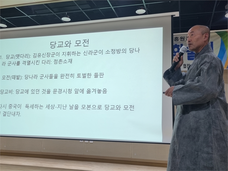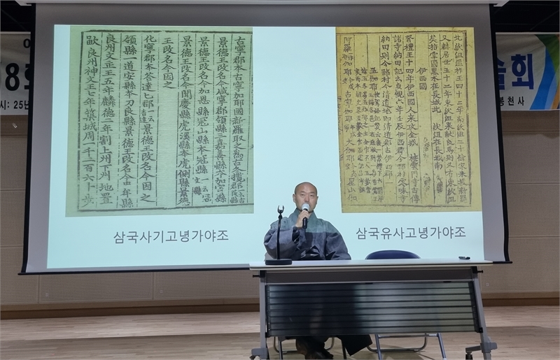 ▲ 지정스님이 문경지역 고녕가야 지명에 얽힌 역사를 풀었다. 자료: 삼태극