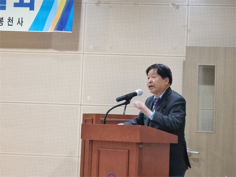 ▲박윤길 경북향토사연구위원이 지정스님의 투쟁역사를 담은 축사를 하였다. 자료: 삼태극