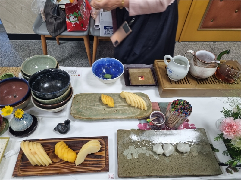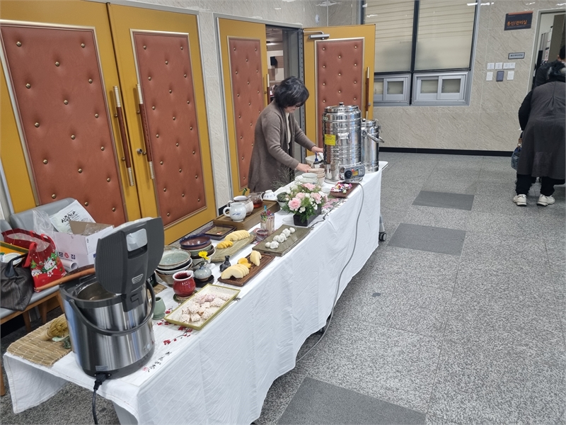 ▲문경지역 차 모임인 새재다리원 차모임에서 다과와 차, 떡 등을 준비하여 참석자들을 따듯하게 맞이 하였다. 자료: 삼태극