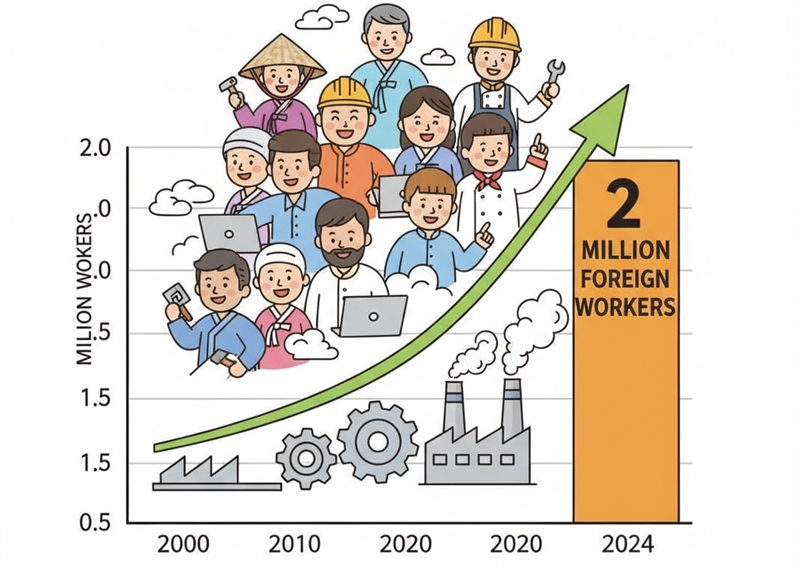 이것은 공식적인 통계이고 불법체류 외노자를 포함한 것이 아니다. 불법체류 외노자가 전체 외노자 수의 절반에 해당한다는 연구도 있다. 법무부는 서기 2025년 5월 기준 불법체류 외노자가 38만여명에 달한다고 하였다. 이는 공식통계에 불과하다. 비공식 불법체류 외노자는 앞선 연구에서 보듯이 공식 외노자의 절반이 된다는 것을 감안하면 외노자는 2백만명이 넘을 것으로 추정된다.