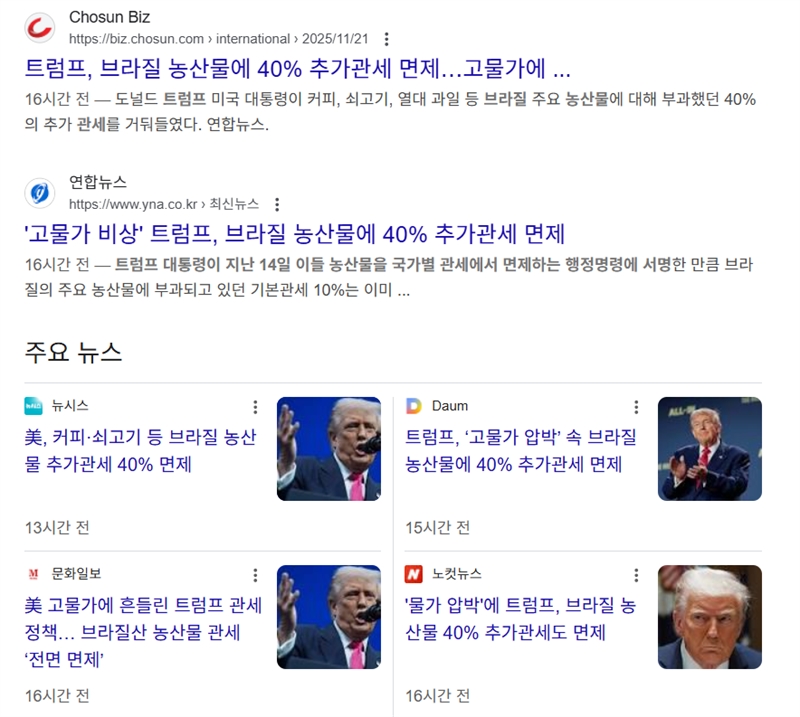 ▲ 고관세로 미국내 물가가 폭등하자 브라질 상품에 가한 관세를 면제했다고 보도하는 언론매체들. 자료: 누리망