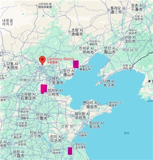 ▲ 붉은색 방형 표식은 연개소문 진격의 유적지. 자료: 강효백